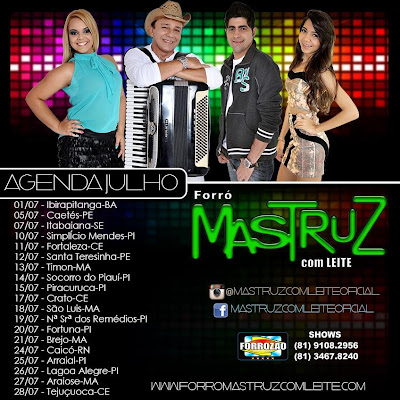 Confira algumas agendas forrozeiras para este mês de julho das bandas Magníficos, Mastruz com Leite, Limão com Mel, Forró Sacode e do final de semana da banda Calcinha Preta.